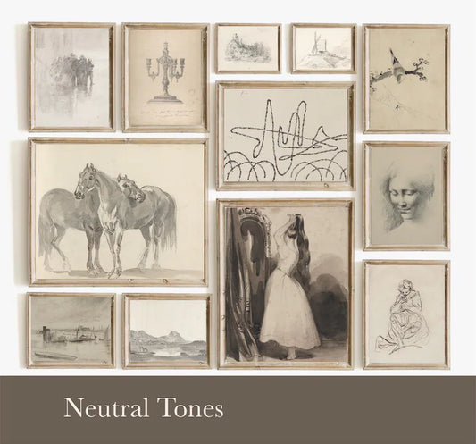Light Academia Decor Set of 250 Neutral Vintage Wall Art