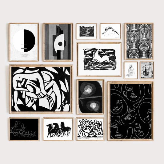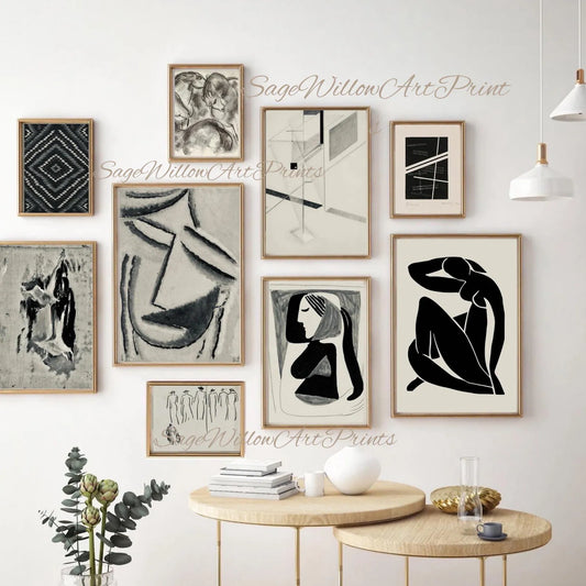250 Abstract Art Set, Black White Prints, Modern Contemporary Original Wall Art